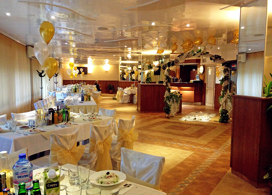 Заведението разполага с просторен салон с капацитет 200 места и лятна градина със 100 места. За нашите гости предлагаме отлична кухня и професионално обслужване, а за младоженците имаме специален подарък - нощувка в апартамент в хотела.