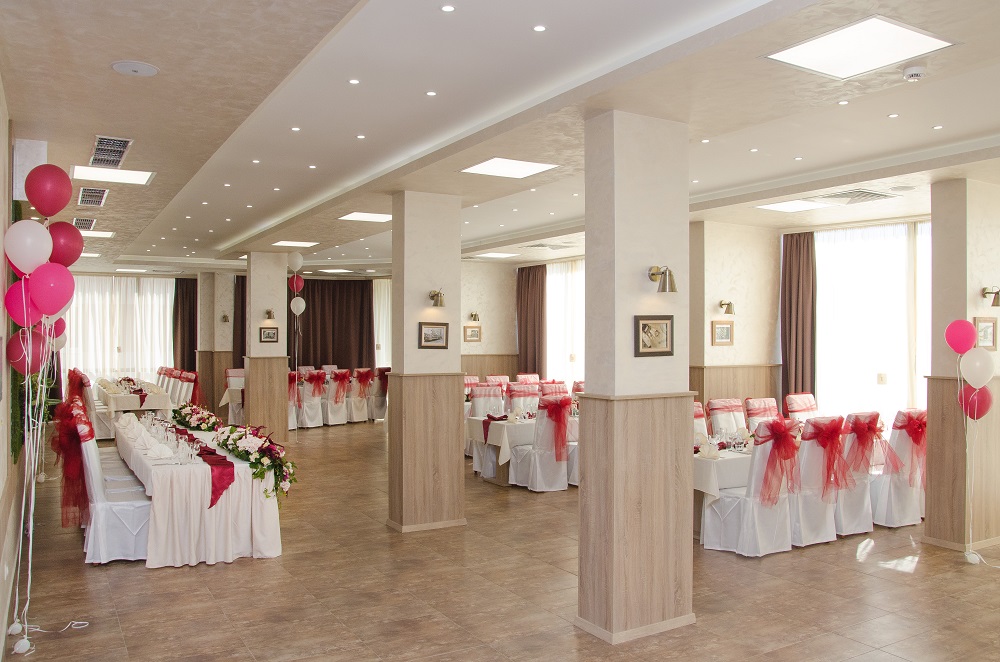 В комплекса се намира светла зала над основния ресторант с прекрасна обширна тераса, изключително подходяща за провеждане на изнесени ритуали, както и уелкъм дринк.
