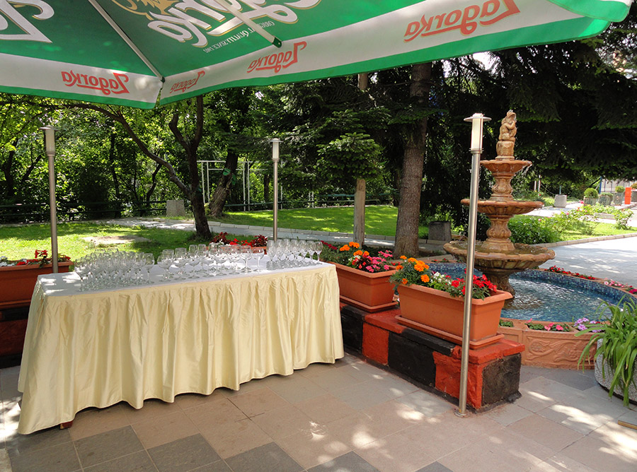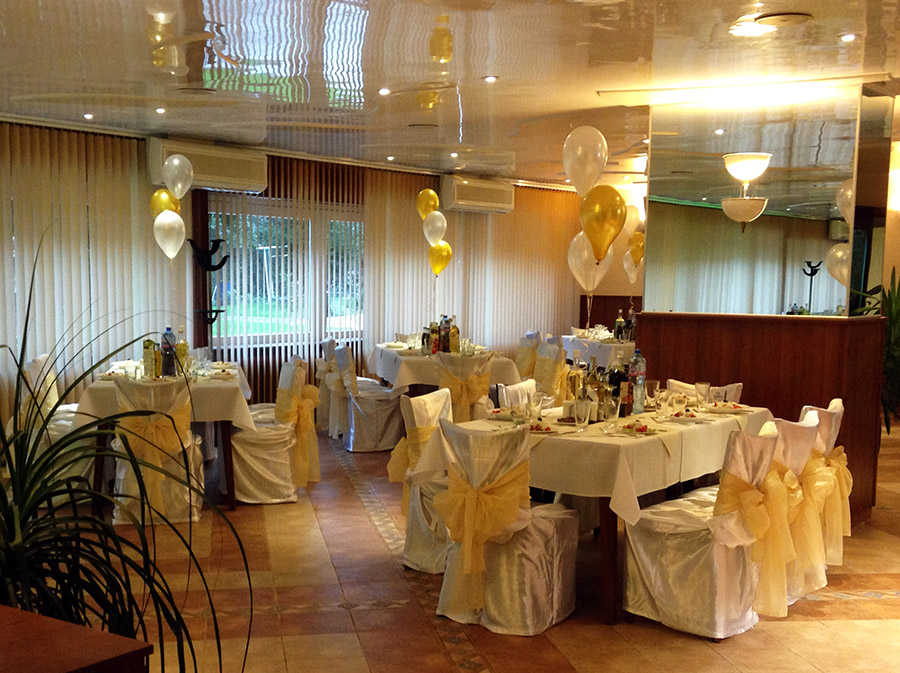 Заведението разполага с просторен салон с капацитет 200 места и лятна градина със 100 места. За нашите гости предлагаме отлична кухня и професионално обслужване, а за младоженците имаме специален подарък - нощувка в апартамент в хотела.