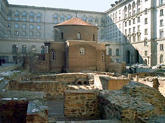 Храм Свети Великомъченик Георги Победоносец е известен като Ротондата. Той е част от сграда, построена през 4 век по времето на римският император Константин Велики и е най-старият архитектурен паметник в столицата, свидетел на драматични исторически обрати. От 10 век сградата, чието предназначение не е известно е превърната в християнски храм. Ротондата притежава уникални стенописи, дело на неповторимо художествено майсторство от средновековието, като част от тях са на възраст 1500 години. Църквата се намира в самият център на града, във вътрешния двор на "Шератон София - хотел Балкан". Ротондата "Св. Георги" е обявена за паметник на културата от ЮНЕСКО.