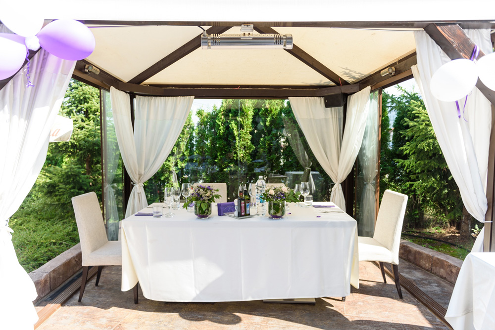 Превърнете вашия сватбен ден в най-запомнящото се, изпълнено с магия и красота събитие. За истинска празнична обстановка на сватбеното тържество има възможност да бъде организирана красива церемония сред уюта на цветната градина към ресторанта, включваща сватбена украса, нежна музика и коктейл.